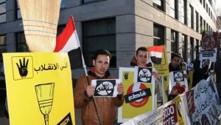 Berlin'deki Mısır Büyükelçiliği önünde toplanan Mısırlılar, üzerinde "Mursi bizim Cumhurbaşkanımız", "Yasal Cumhurbaşkanı Mursi", "Darbeyi süpürelim" ve "Demokratik yeni bir başlangıç askerin eline verilemez" yazılı pankartlar açtı.