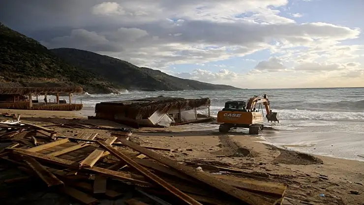 Belcekız sahilinde oluşan yaklaşık 5 metrelik dalgalar kıyıdaki işletmelere zarar verdi.