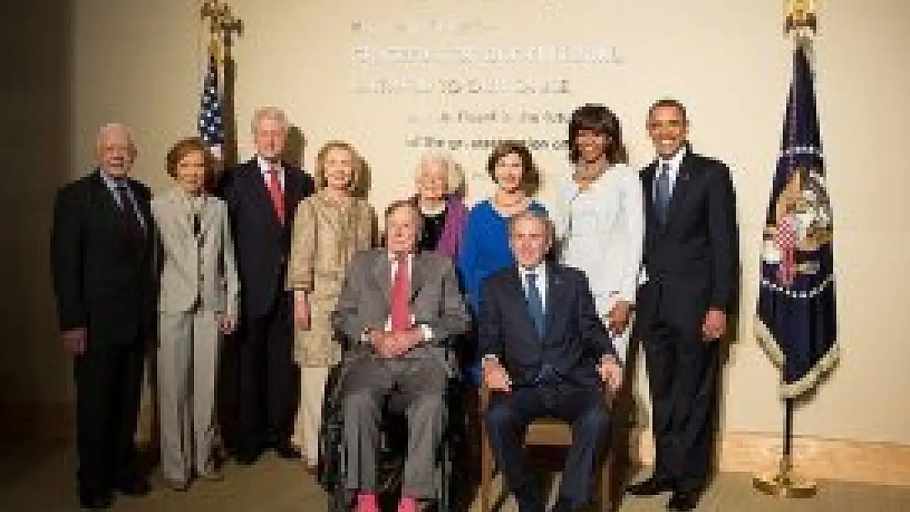 ABD Başkanlarından Jimmy Carter ve Rosalynn Carter, Bill Clinton ve Hillary Rodham Clinton, George H. W. Bush ve Laura Bush, George W.Bush ve Barbara Bush ile Barack Obama ve Michelle Obama, Teksas'ta, George W. Bush Başkanlık Merkezi'nin açılışına katıldılar.