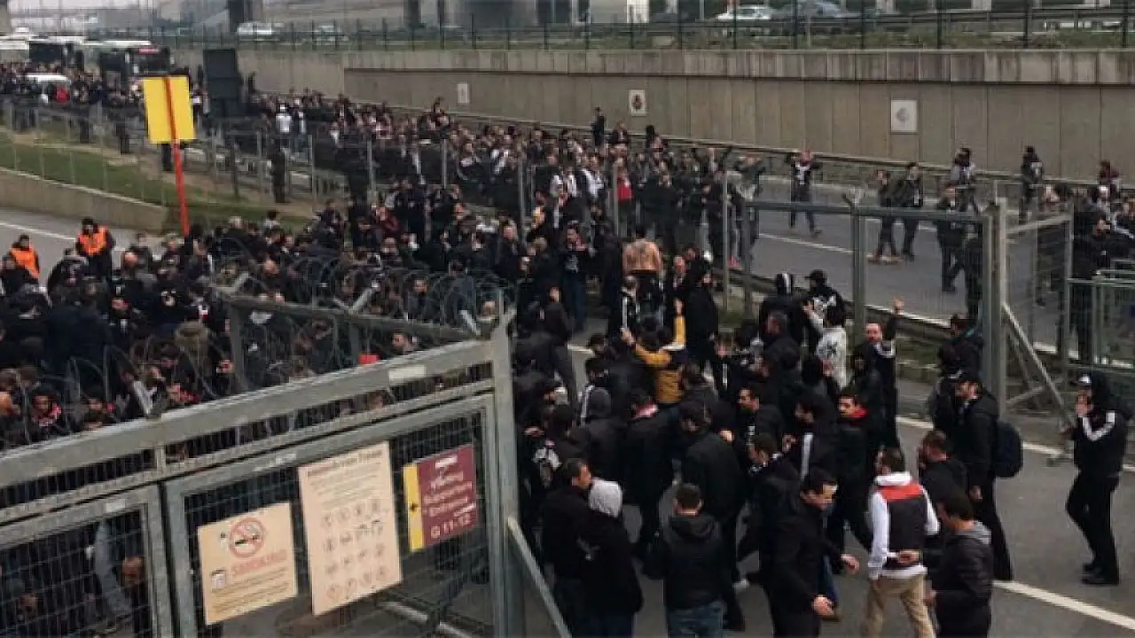 Vodafone Arena'da toplanan Siyah-beyazlı taraftarlar, yaklaşık 30 otobüs ile derbi maçının oynanacağı TT Arena'ya doğru yola çıktı. Saat 18.00'e doğru TT Arena'ya ulaşan taraftarların geniş güvenlik önlemli altında stada girişi sağlandı.