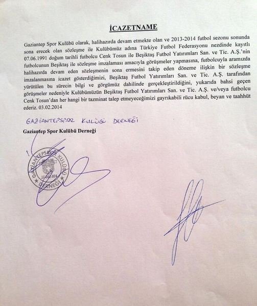 Beşiktaş ile Gaziantepspor arasındaki görüşmelerin belgeleri, siyah beyazlı takım tarafından açıklandı.
