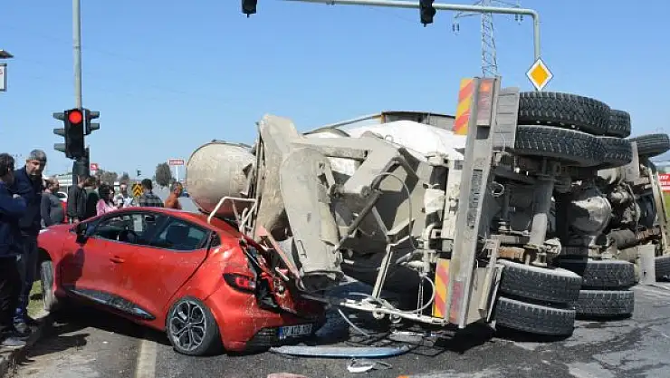 Beton mikseri ışıkta bekleyen araçlara çarpıp devrildi: 1 yaralı