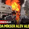 Beton pompası alev alev yandı, 2 otomobil zarar gördü