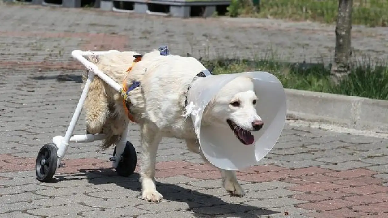 'Beyaz', veterinerinin yaptığı aparatla yürümeye başladı