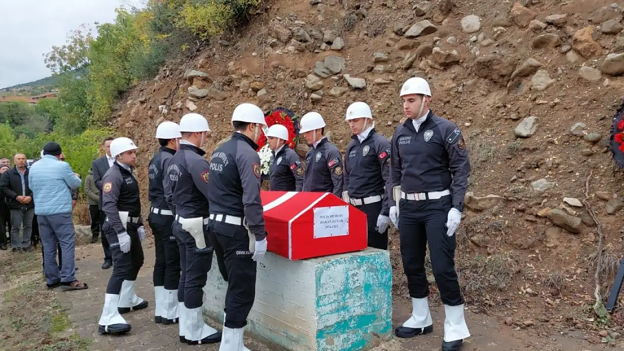 BALIKESİR'in Ayvalık ilçesinde beyin kanaması geçirip, hayatını kaybeden polis memuru Hakan Duyar (46), memleketi Eskişehir'de son oyluculğuna uğurlandı.