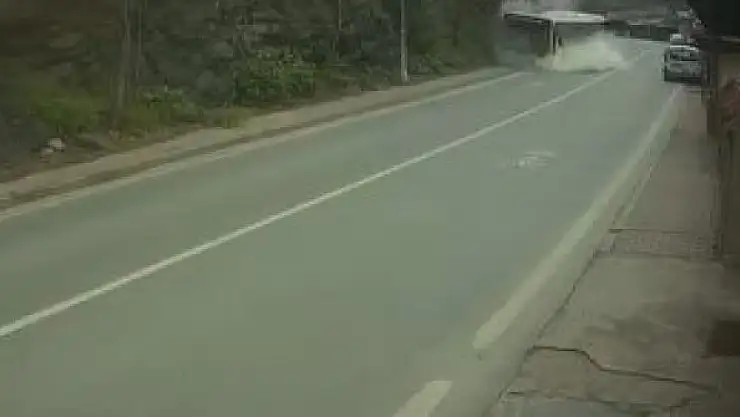 İETT otobüsünün yol kenarındaki kayalık alana daldığı kaza anları güvenlik kamerasına saniye saniye yansıdı. Görüntülerde virajı dönen otobüs kontrolden çıkarak yol kenarındaki kayalık alana dalıyor. Kayalıklara dalan otobüsün önü adeta şaha kalkıyor.