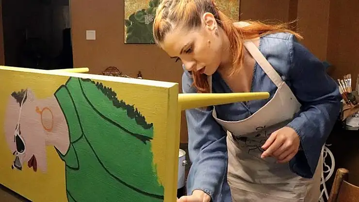 Atölyesinde, doktorunun da istediği şekilde stresten uzak yeni bir hayat kuran Tunay, gün boyu ahşap üzerine desenler çiziyor.