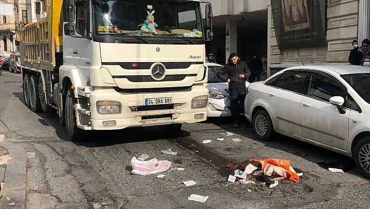 Beyoğlu'nda hafriyat kamyonunun çarptığı kişinin bacağı ezildi