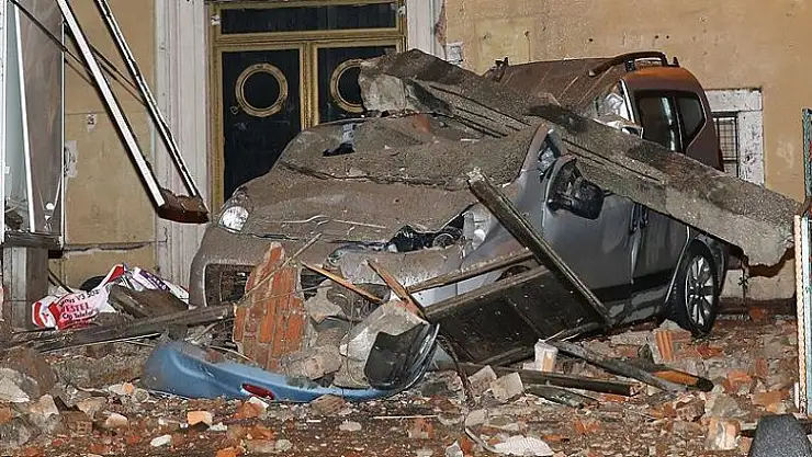 Yapılan incelemelerde, duvar parçalarının park halindeki iki otomobilin üstüne düşmesiyle hasara yol açtığı belirlendi.