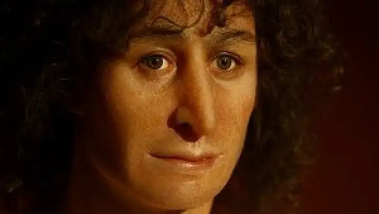 Ziyaretçiler, sergilenen 2500 yıllık Fenikeli insan modeline yoğun ilgi gösteriyor.