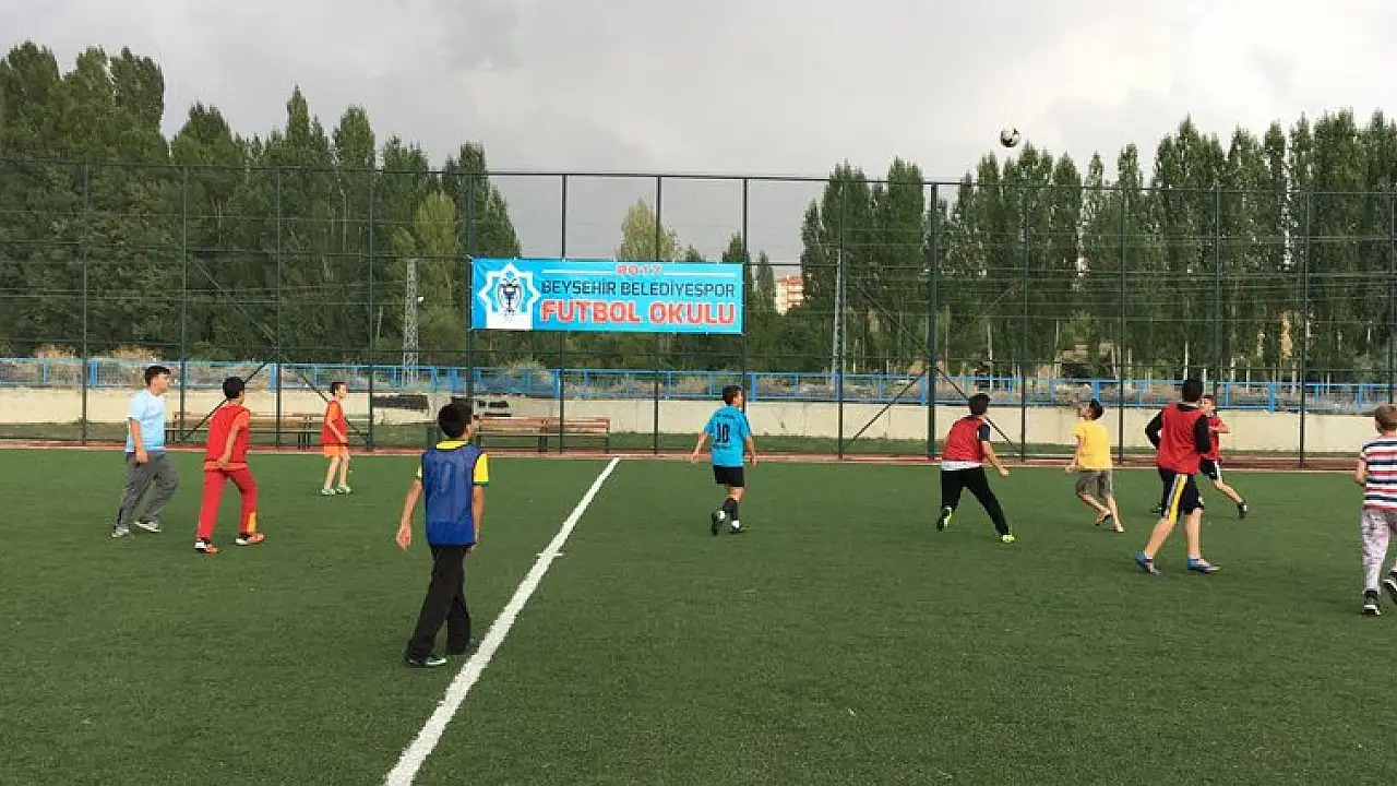 Beyşehir Belediyesi tarafından çocukları yaz tatilinde spora yöneltmek için açılan yaz futbol okulu, eğitimlerini sürdürüyor