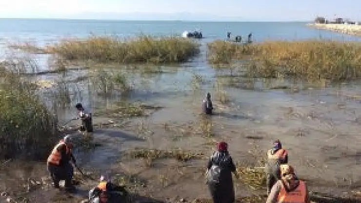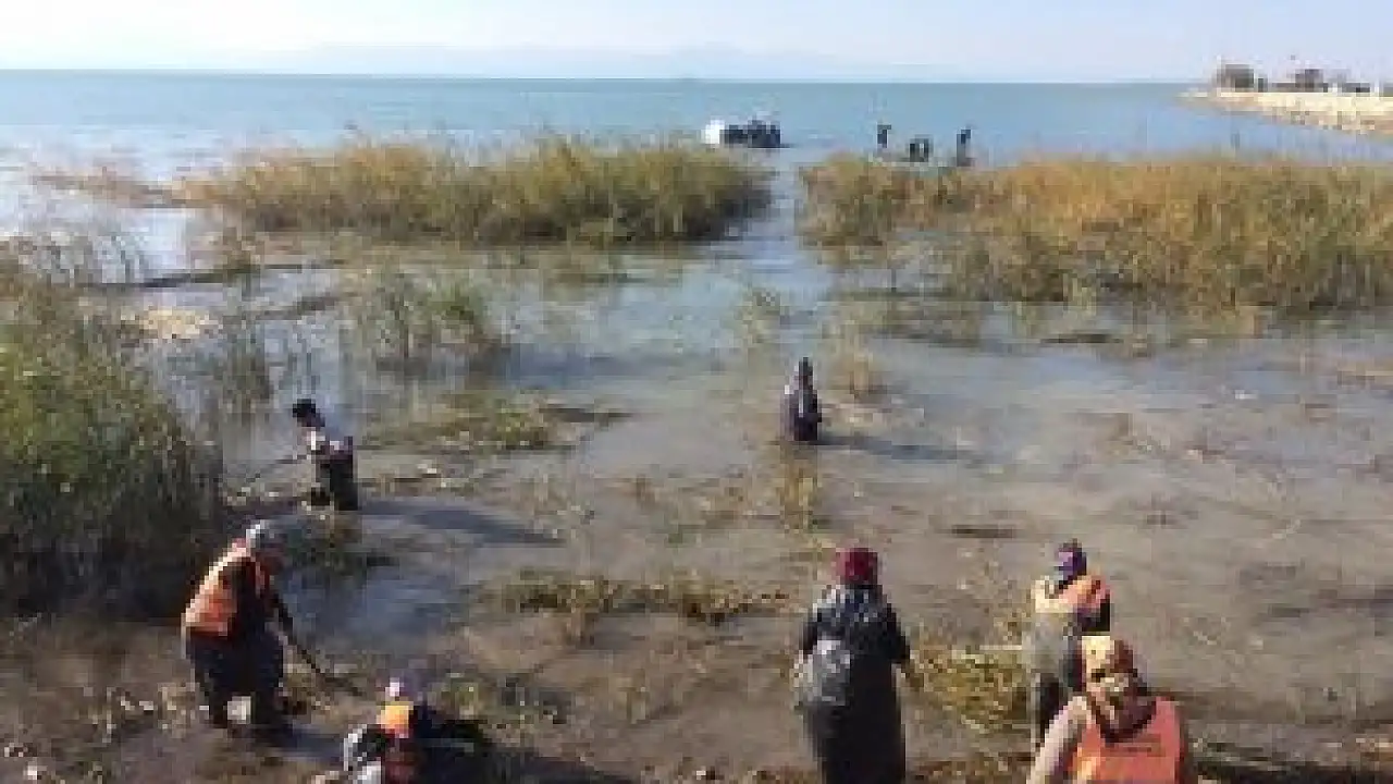 Beyşehir Gölü kıyısında saz kesim seferberliği