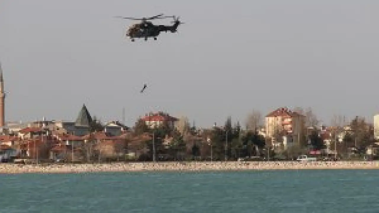 Türk Silahlı Kuvvetleri'nce gerçekleştirilen tatbikatta, senaryo gereği gölde kaybolan bir kişi arama kurtarma helikopteri ekibi tarafından kurtarıldı