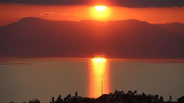 Beyşehir gölünde güneşin batışı bir başka güzel