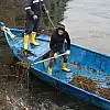Ekipler, tarihi Taşköprü ile Eşrefoğlu Köprüsü arasında kalan göl yüzeyinde oluşan görüntü kirliliğinin önüne geçebilmek için seferber oldu.