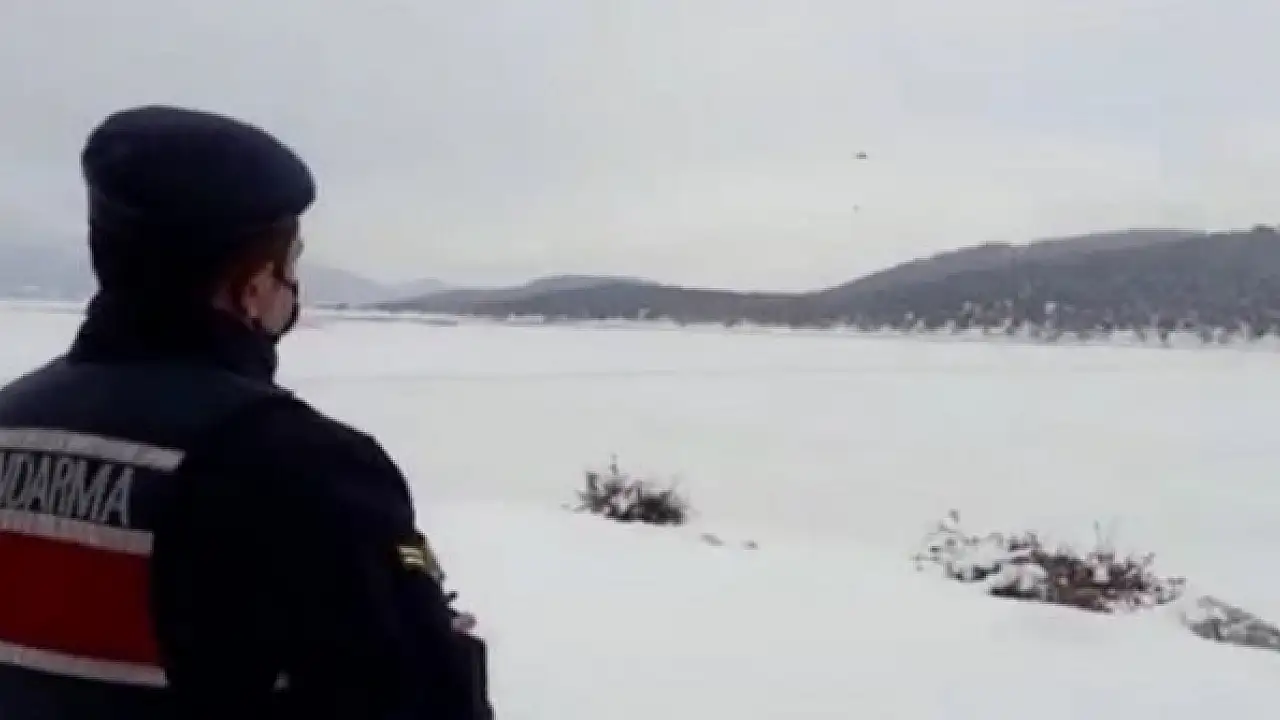 Konya'nın Beyşehir ilçesi Beyşehir Gölü'nde, etrafı buzla kaplanan adada mahsur kalan besicilere ihtiyaçları olan ilaç ve gıda kıyıdan drone aracılığıyla ulaştırıldı.
