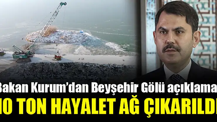 Çevre, Şehircilik ve İklim Değişikliği Bakanı Murat Kurum, 'Beyşehir Gölü'nde toplam 683 dalış gerçekleştirdik, 35 kilometre uzunluğunda 10 bin kilogram ağırlığındaki hayalet ağı gölümüzden çıkardık.' dedi