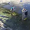 Kanala giren bazı vatandaşlar da uyarılara rağmen balıkları poşetlere topladı.