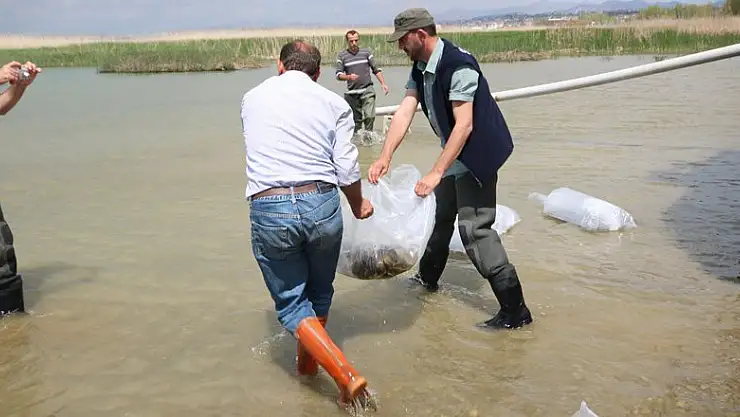 Konya Beyşehir Gölü'ndeki balık popülasyonunu artırmak için göle, 450 bin yavru sazan balığı bırakıldı.