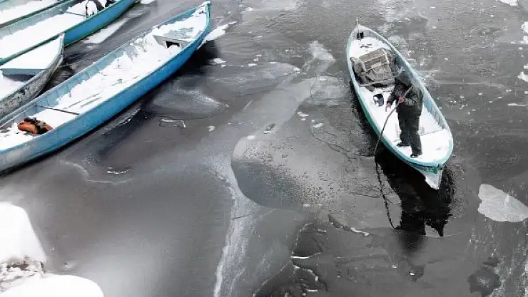Konya'da soğuk hava nedeniyle Beyşehir Gölü'nün kıyı kesimlerinin buz tutması, balıkçılara zor anlar yaşattı.