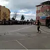 Daha sonra ise okul bahçesine yakılan tatbikat ateşi itfaiye hortumuyla söndürüldü.