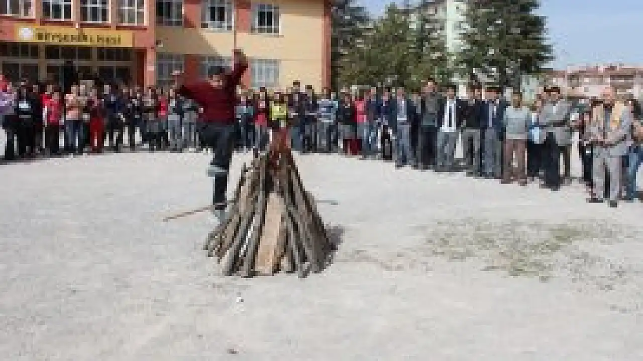 Nevruz Bayramı nedeniyle Beyşehir Lisesi bahçesinde kutlama programı düzenlendi. Programda günün anlam ve önemini belirten bir konuşma yapan Okul Müdürü İbrahim Yavaş, Nevruz’un Türk bayramı demek olduğunu ve baharın gelişini müjdelediğini söyledi. Günün anlamına ilişkin şiirlerin okunduğu kutlamalar çerçevesinde öğrencilerin yanı sıra öğretmenler de yakılan nevruz ateşinin üzerinden atladı. Daha sonra ateşte kızdırılan demir dövülerek bir gelenek yaşatıldı. Beyşehir Endüstri Meslek Lisesi’nde de Nevruz Bayramı nedeniyle yarışmalar yapıldı. Öğrencilerin katıldığı değişik içerikli yarışmalar büyük bir çekişmeye sahne olurken, renkli görüntüler oluşturdu. Demir dövme geleneğinin de canlandırıldığı programda öğrenci korosu türkülerini seslendirdi, katılımcılara yemek ikram edildi.