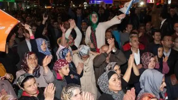 Konuşmaların ardından seçim karargahı önünde toplanan partililer, çeşitli sloganlar atarak çalan davul zurna eşliğinde oynayarak seçim zaferini kutladı. Kutlamalar, çarşı meydanında yürüyüşle devam ederken, bazı partililer de araçlarıyla şehir merkezinde konvoy yaparak AK Parti’nin tek başına iktidara gelişini kutladı.