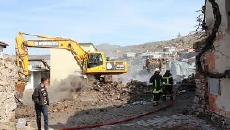 İtfaiye ekipleri çevredeki bir eve de sıçrayan yangını büyümeden söndürürken, altı samanlık olan yanıp çöken 2 evde de soğutma çalışması başlatıldı.