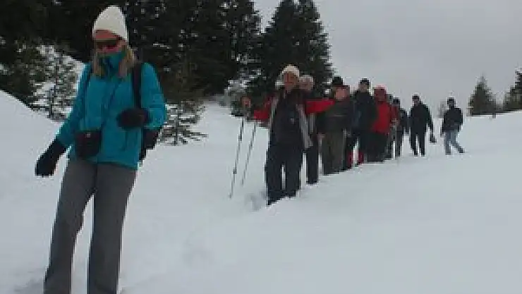 Beyşehirli doğasever ve dağcılar, kar yürüyüşü etkinliği düzenledi.