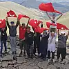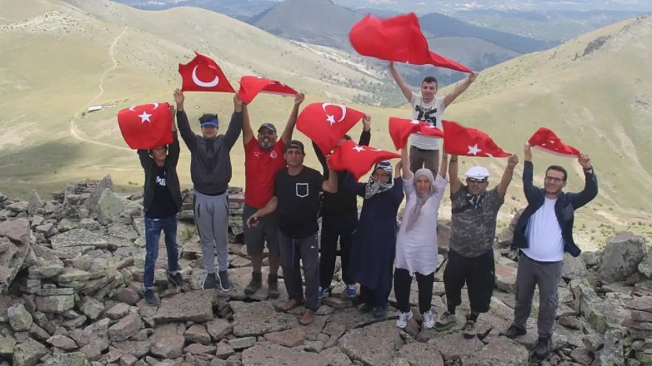 Doğaseverler dağın zirvesine ulaştıklarında hep birlikte Türk bayrakları açtı.