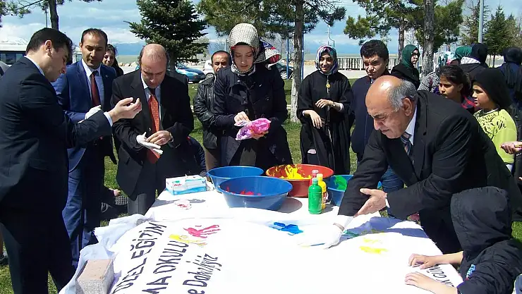Göl kenarındaki Vuslat Parkı’nda düzenlenen etkinliğe katılan çocuklar, “Engelsiz eller” sloganıyla büyükleriyle beraber özel olarak hazırlanan afişe el izlerini bıraktı.