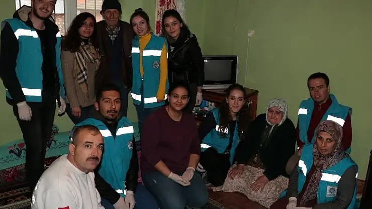 Gönüllü öğrenciler, yaşlı ailelerle sohbete de zaman ayırarak manevi yönden onlara destek olmaya çalıştı.