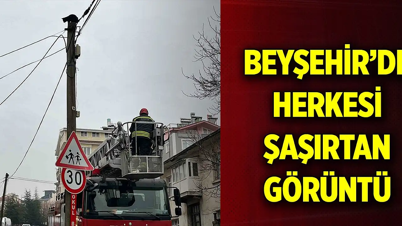 Beyşehir ilçesi Hacıakif Mahallesi'nde bir sokakta kedinin direkte uzun süre kaldığını ve inemediğini çıkardığı sesten fark eden vatandaşlar durumu itfaiyeye bildirdi.