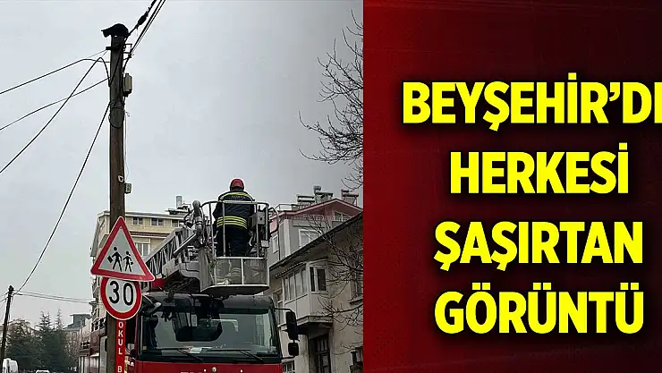 Konya'nın Beyşehir ilçesinde telefon direğinin tepesinde mahsur kalan bir kedi, itfaiye ekiplerinin müdahalesiyle kurtarıldı.
