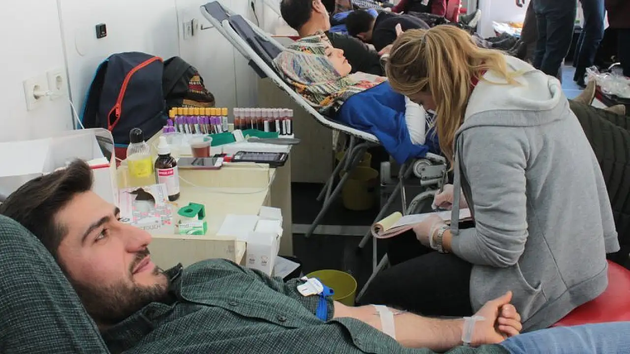 Vatandaşlar, kan bağışı yapabilmek için Anıt Alanı'nda sıraya girdi. Kan bağışı kampanyasına vatandaşların yan ısıra kamu kurumlarında görev yapan çalışanlar da destek verdi.