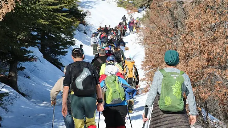 Beyşehir'de kar üzerinde doğa yürüyüşü