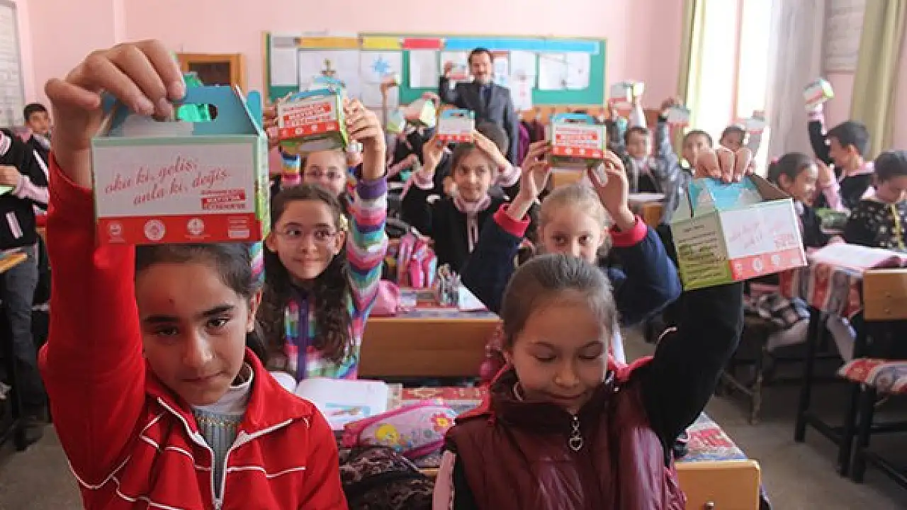 Fuarda sergilenecek kitaplardan kendi harçlıklarından biriktiripsatın alabilmesi içinöğrencilere kitap kumbaraları dağıtıldı.