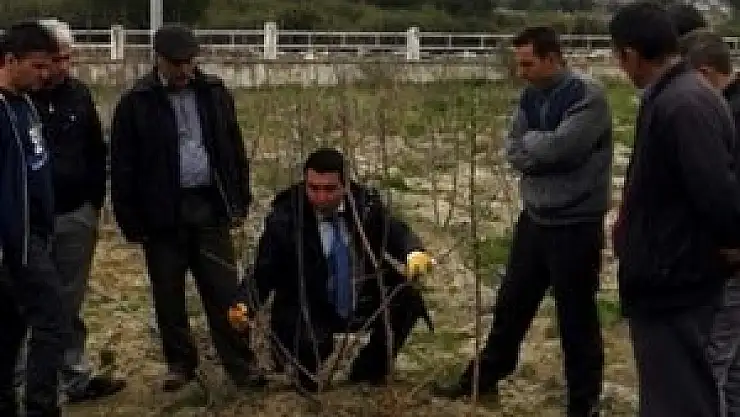 Eğitim çalışmalarında üreticiye budamanın ne olduğu anlatıldı.