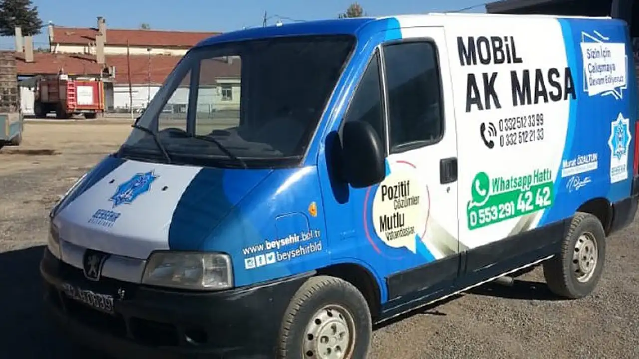 Konya'nın Beyşehir İlçe Belediyesi bünyesinde, 2014 yılında başkanlık makamına bağlı olarak oluşturulan ve vatandaşların talep, şikayet ve önerilerini dinleyerek çözüme ulaştıran Ak Masa Birimi mobil hale dönüştürülüyor.