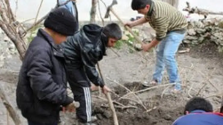 Konya'nın Beyşehir ilçesinde engelli bir aileyi ziyaret eden ilkokul öğrencileri, çağırdıkları ustayla birlikte ailenin yaşadığı evin bahçesine içme suyu hattı çekti.