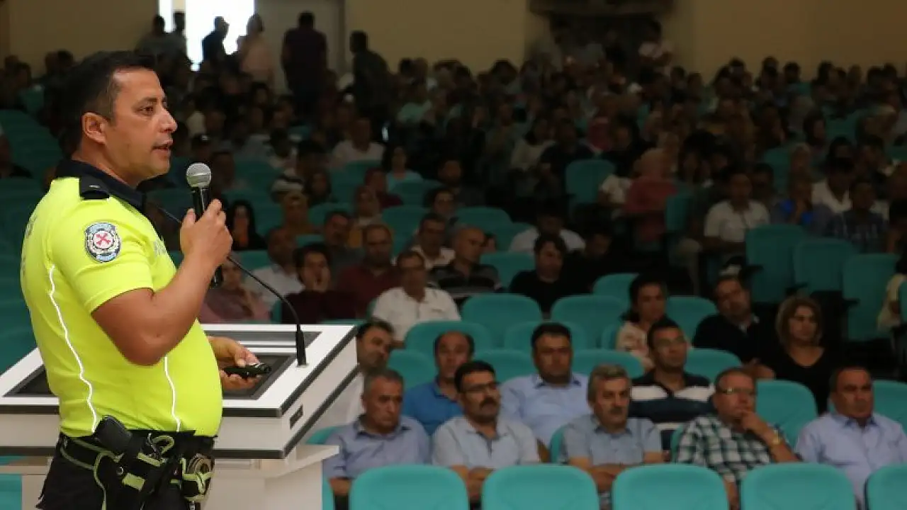 Konya'nın Beyşehir ilçesinde, yeni eğitim ve öğretim yılının başlangıcı öncesinde ilçe genelinde görev yapan öğretmenlere trafik eğitimi verildi.