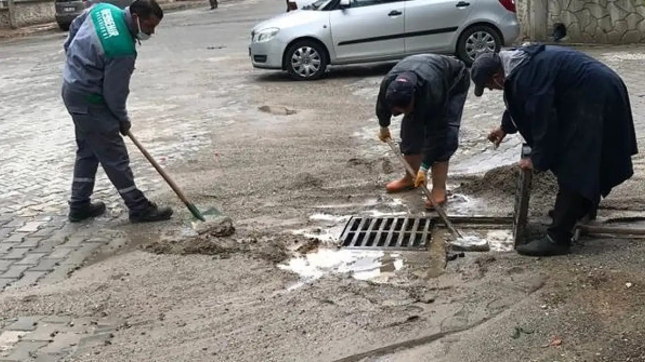 Beyşehir Belediyesi ekipleri, Cuma günü yağan şiddetli yağmur ve dolu yağışında oluşan çevre kirliliği için saha çalışmalarını sürdürüyor.