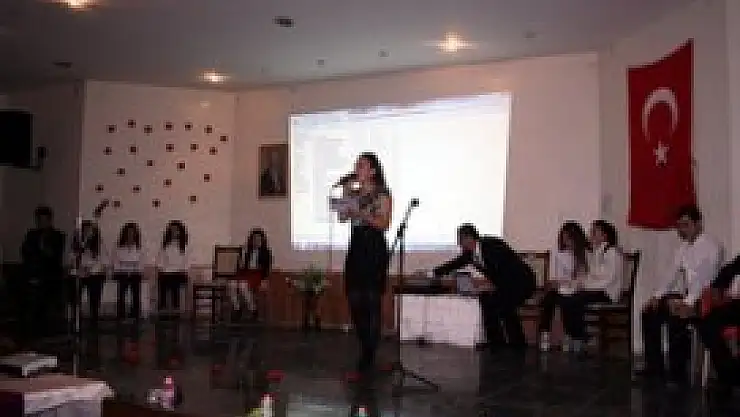 Konuşmanın ardından sahne alan öğrenci ve öğretmenler kendi yazmış oldukları ve ünlü şairlerin şiirlerini seslendirdi.