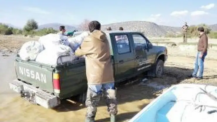 Ekipler tarafından teknelere çekilerek imha edilmek üzere toplanan ağlar üzerinde, çok miktarda takılı vaziyette bulunan canlı balıklar ise yaşam alanı olan göl sularına tekrar bırakıldı.