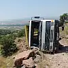 Konya’nın Beyşehir ilçesinde, toprak yüklü kamyonun devrilmesi sonucu sürücü yaralandı.