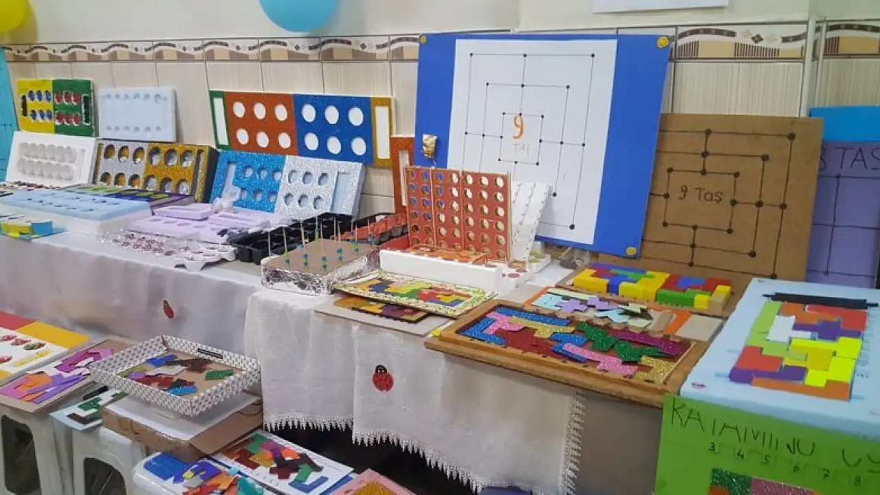 İki gün süreyle açık kalacak sergi kapsamında öğrenciler 3 taş 9 taş, hedef 4, katemino, mangala oyunlarını tasarlayıp oynarken, zeka oyunlarını arkadaşlarına tanıttı. Ayrıca, sergide sanat etkinliklerinden teraryum iplik sanatı, taş boyama, ebru kolajlama çalışmaları da halkın beğenisine sunuldu.
