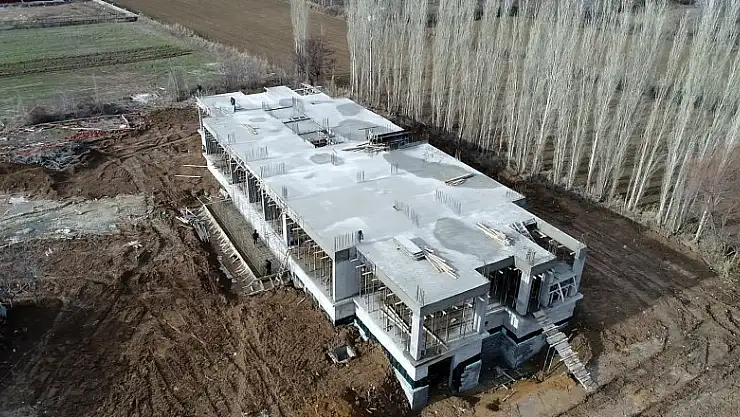 Konya'nın Beyşehir ilçesinde yapımına başlanan yeni Emniyet Müdürlüğü hizmet binasının inşaatı sürüyor.