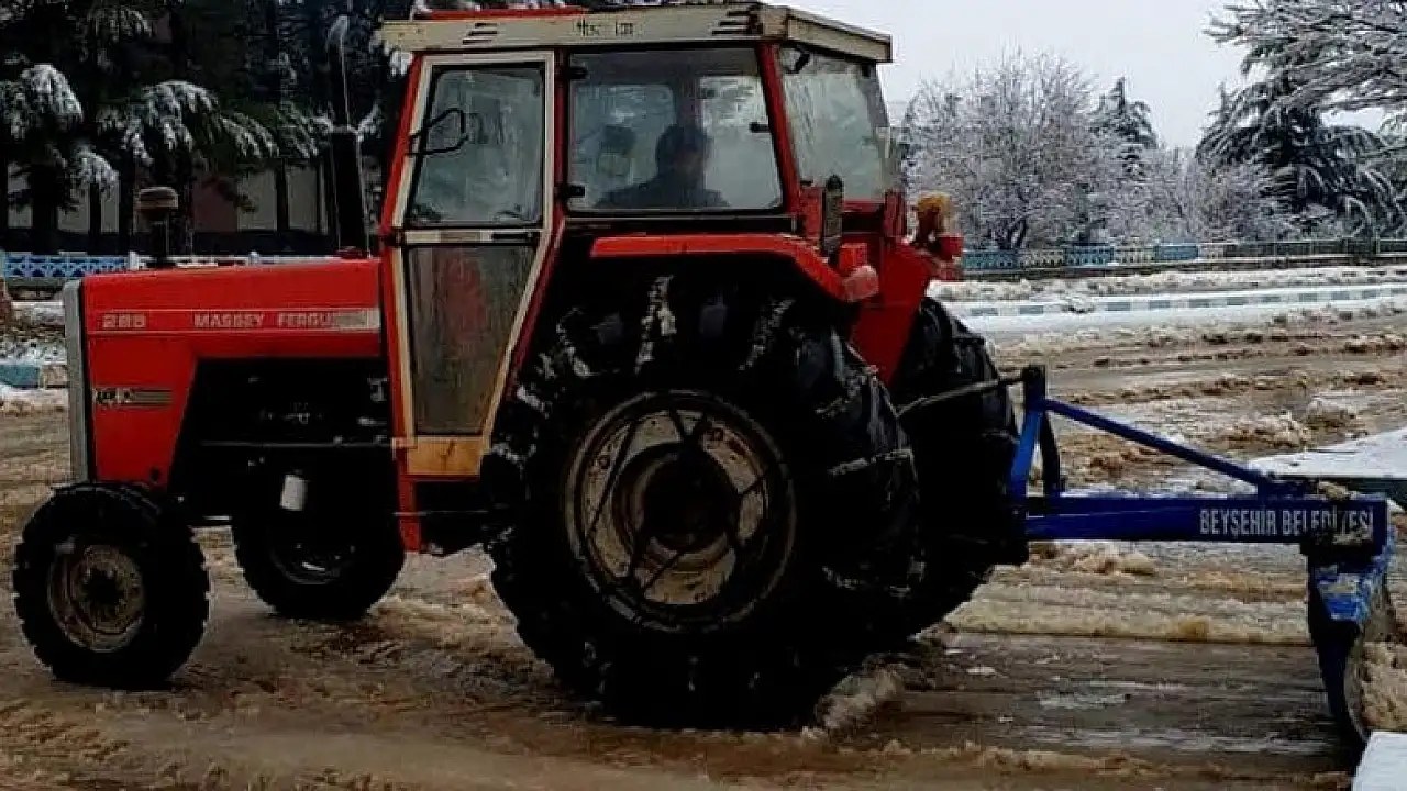 Beyşehir Belediyesi tarafından köyden mahalleye dönüşen yerleşim birimlerinde mahalle muhtarlıklarına tahsis edilen traktörlerin arka bölümüne takılarak kullanılan kar küreme ataşmanları kış mevsiminde karla mücadele çalışmalarına önemli katkılar sağladı.