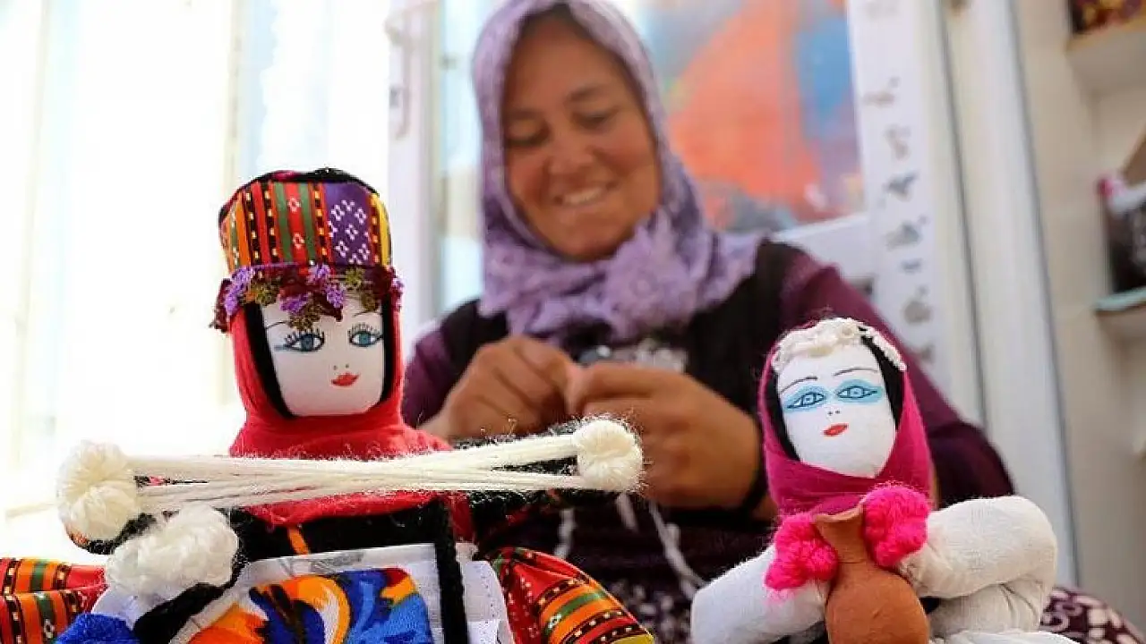 Nevşehir'in Derinkuyu ilçesinde, metal çubuk, kumaş parçaları ve gazoz kapağı kullanarak yaptıkları bez bebekleri turistlere satan kadınlar, aile bütçelerine katkıda bulunuyor.
