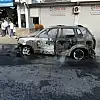 ÜMRANİYE'de, denetim yapan ekiplerin işlem yapmasına sinirlenip otomobilini yakan sürücü etrafa ve polis ekiplerine bıçakla saldırdı.